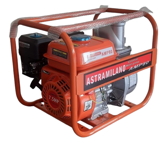 The 3-inch 7.5HP Astramilano water pump is a petrol-powered high-flow pump commonly used for farm irrigation, draining flooded areas, construction sites, and water transfer.